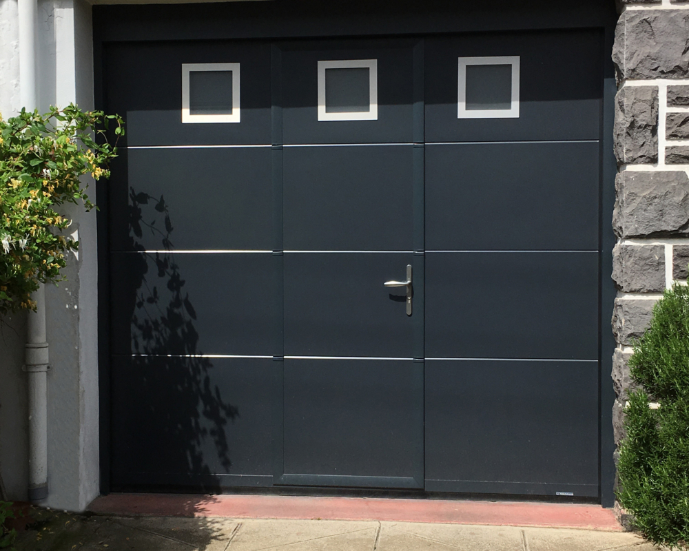 La porte sectionnelle à refoulement plafond permet de libérer les murs latéraux, particulièrement utile en cas de fenêtre murale. Optez pour un style architectural avec le modèle Sans rainure. Il peut être agrémenté d’un motif Alunox pour ajouter une touche décorative à votre façade. Facilitez l’accès piéton avec l’option portillon et faites entrer la lumière naturelle grâce à l’option hublot ! Les Portes de garage DISTRIB sont équipées de panneaux isolés en acier double face avec une mousse polyuréthane haute densité de 40 mm pour assurer une isolation thermique et acoustique optimale.