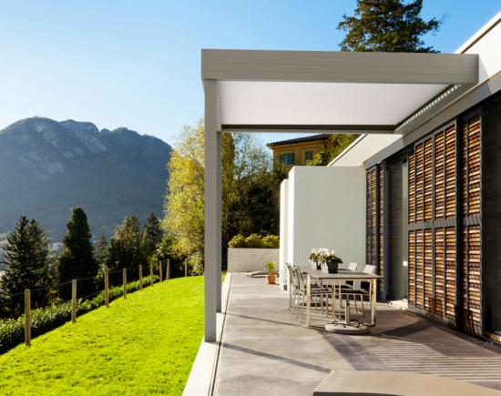La pergola bioclimatique Berlin laisse libre cours à votre imagination. Avec 6,90 m de portée maximale, elle vit au rythme de vos envies et donne une dimension unique à votre terrasse. Dotée de la technologie NVS®, cette solution se distingue par son niveau de finition exceptionnel, sans aucune vis apparente.